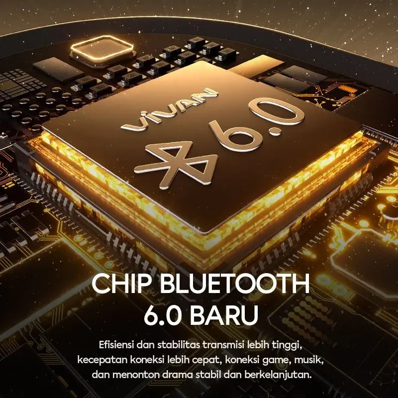 - Chip Bluetooth 6.0 terbaru untuk transmisi lebih cepat dan stabil.