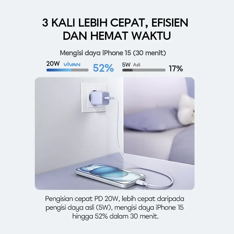 VIVAN POWER 20T Mini Charger | PD 20W 3A Fast Charging | 6 Safety Protection | Original - Garansi 12 Bulan