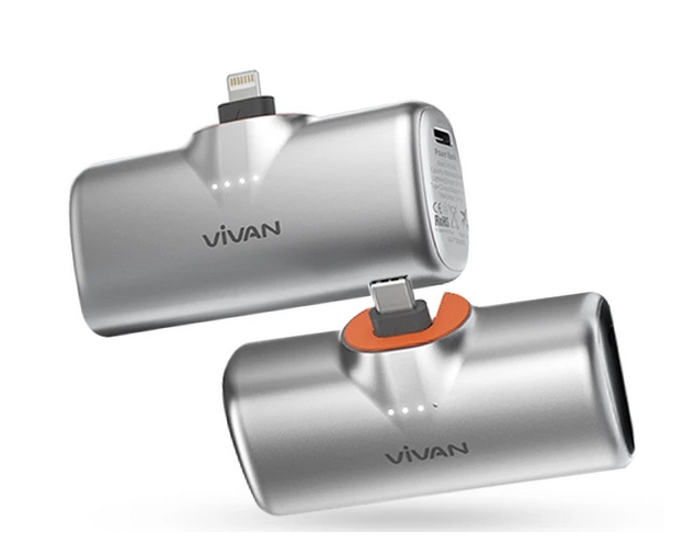 VIVAN Super Mini Powerbank VPB-A05 | 4800 mAh Foldable Plug | Type C Lightning - Garansi 1 Tahun